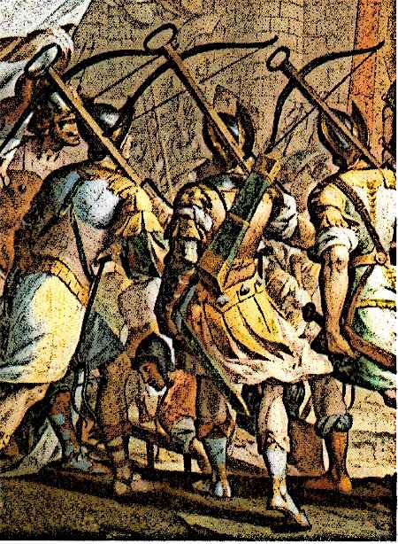 Ситуация осложнялась тем, что Генуя недавно выдержала серьезную войну, и денег на экспедицию у правительства не было. Пришлось занимать их у банка Святого Георгия, дабы собирать шеститысячный отряд наемников. В их число входили и знаменитые генуэзские арбалетчики — отлично вооруженные и экипированные воины. Их боевое мастерство было так велико, что некоторые правители, захватывая таких солдат в плен, приказывали увечить им руки, чтобы они больше никогда не могли пользоваться арбалетом.