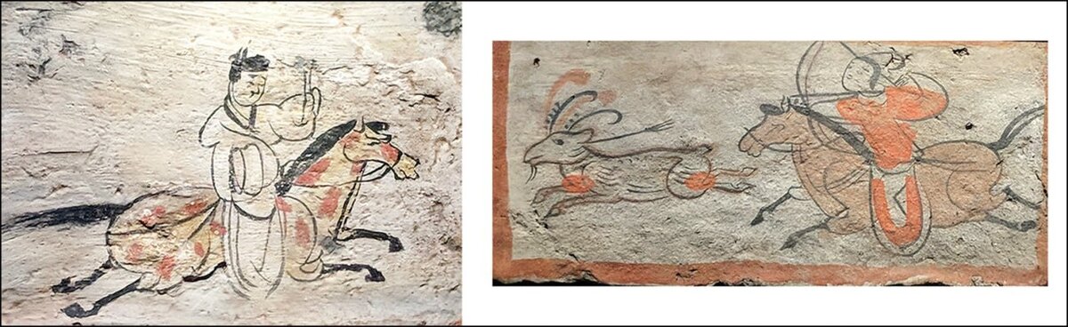 Ещё одно важное новшество — точка опоры. «Предками» стремени были крючки, крепящиеся к седлу. В III-IV веке н.э. в Китае для стабилизации использовали тканевые мешки, также подвешенные к седлу (фото 3). Такие нашли в захоронении в Аньяне (провинция Хэнань), они датируются первой половиной IV в. н. э. К середине четвертого века нашей эры пары стремян находили в захоронениях по всему северо-восточному Китаю и Корее.
